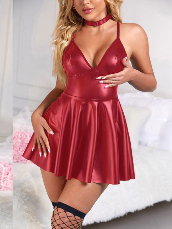 Švelnaus audinio naktinukas su nėrinių akcentais užrišamas už kaklo.